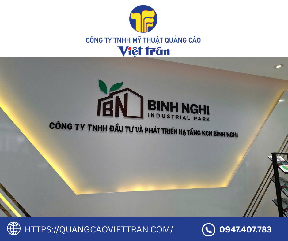 Việt Trân vừa hoàn thiện và bàn giao hạng mục biển hiệu nội thất cho đối tác tại Bình Nghi Industrial Park. Đây là một trong những công trình trọng điểm khẳng định sự chuyên nghiệp trong thiết kế và thi công quảng cáo của chúng tôi tại khu vực Bình Định.